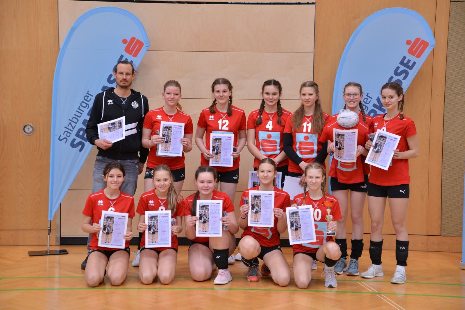 Titelanwärter- und Tabellenführerinnen in der Stadt Sbg: NSMS Walserfeld mit Betreuerin Gruber Dani